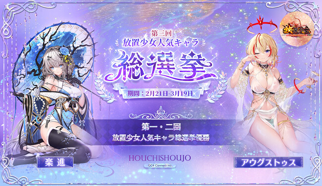C4 Connectは、 現在サービス中の美少女RPGゲーム『放置少女~百花繚乱の萌姫たち~』(スマートフォンアプリ及びブラウザ版)(以下、 『放置少女』)が2023年2月21日(火)より「第三回放置少女人気キャラ総選挙」を開始した。