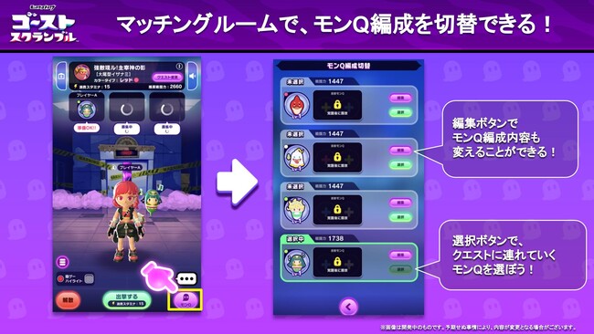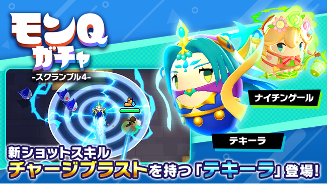 また、 本日から開幕する「スクランブル4」では、味方のオバケ「モンQ」が排出されるガチャにモンストでおなじみの「テキーラ」「ナイチンゲール」「グィネヴィア」が新登場する。