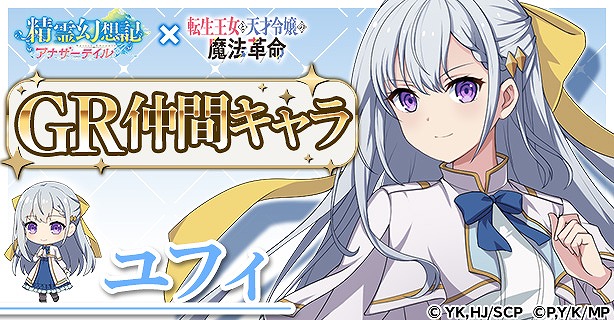 「転生王女と天才令嬢の魔法革命」から、「アニス」「ユフィ」「イリア」「ティルティ」を始め、作中のキャラ達が期間限定で、仲間キャラとして登場する!