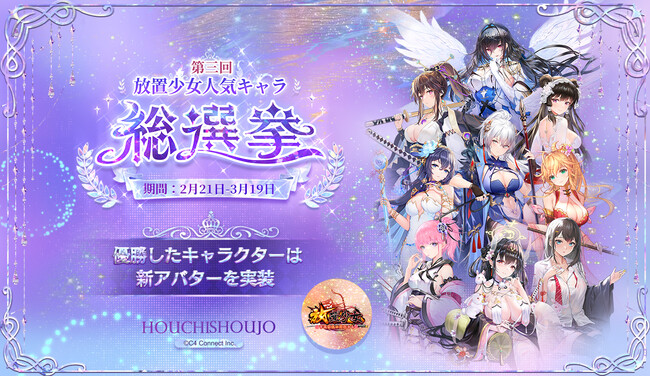 C4Connectは、『放置少女~百花繚乱の萌姫たち~』(放置少女)について、2月21日(火)~3月19日(日)にわたって行っている「第三回放置少女人気キャラ総選挙」の予備選挙段階が終了したことを発表。297名の少女から選び抜かれたベスト32は以下の結果となった。