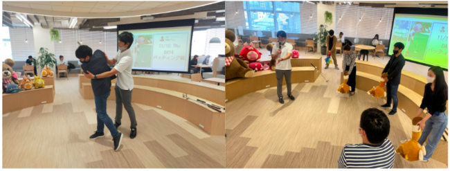 部活動の一つでもあるラジオ体操部と人事部門が連携し、社内で毎日ラジオ体操を実施。出社している人だけでなく、在宅勤務者もオンラインでつながり参加している。