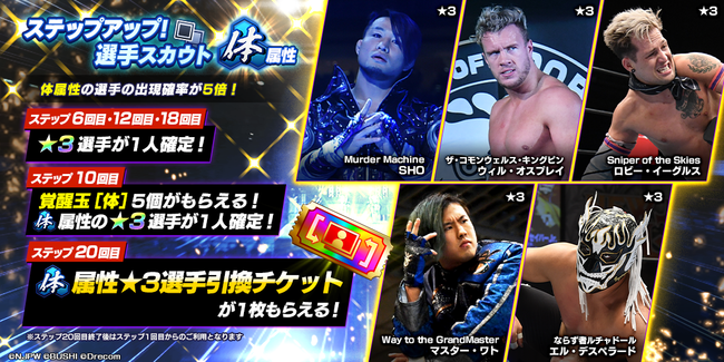 新日SSは2023年3月15日(水)メンテナンス終了後から、心・技・体の属性をピックアップした各種ステップアップ選手スカウトを開催。