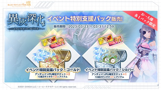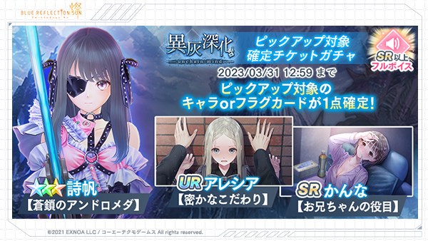 EXNOAは、本日(3月23日)、スマートフォン/PC向けヒロイックRPG『BLUE REFLECTION SUN/燦』において、シングルレイドバトルイベント「異灰深化 -unchain mind-」を開催することを発表した。