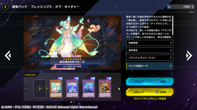 コナミデジタルエンタテインメントは、 遊戯王OCG/TCGを最大限遊べるデジタルカードゲーム『遊戯王 マスターデュエル』にて、4月10日から新たなセレクションパック「ブレッシングス・オブ・ネイチャー」を追加した。