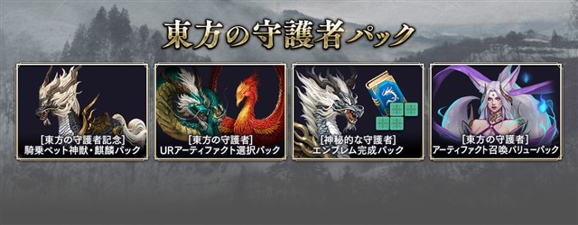 本アップデートでは、「装備特性共有システム」実装に合わせて、記念パックを多数追加した。武器や防具の成長に大変役立つ「[装備特性共有実装記念]グループ2・3装備+40強化パック」やZRランクのレベル40/特性Lv10/+40強化/3覚醒装備を対象リストから1つ選択して獲得できる「[装備特性共有実装記念]グループ3防具選択パック」、特性が2レベルずつ100%確率で強化されるEX特性の石を含んだ「[装備特性共有実装記念]グループ2・3EX特性の石パック」など多様な商品が登場している。また、「東方の守護者」に関連する新アガシオン「三足烏」や新騎乗ペット「神獣・麒麟」なども追加している。