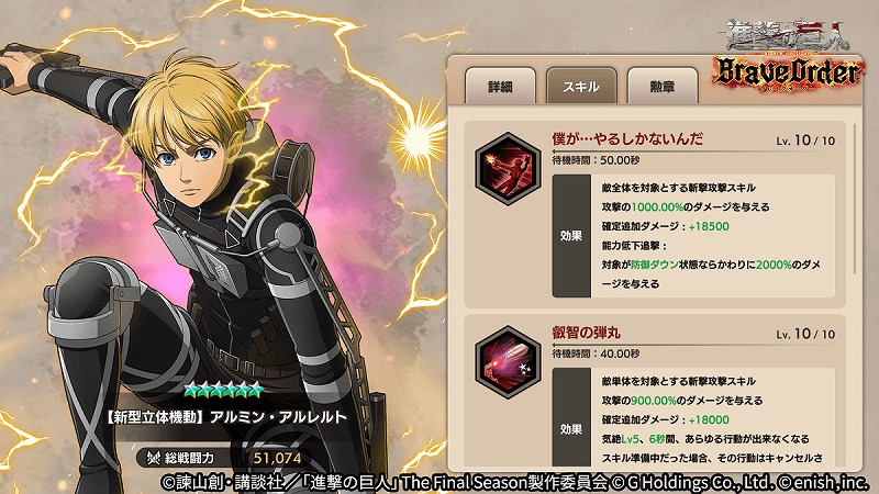 また、本日より新登場の【新型立体機動】アルミン・アルレルト、【氷解】アニ・レオンハート、【憲兵団コート】ヒッチ・ドリスがピックアップされた「氷解~奪う者と奪われる者~ガチャ」も同時開催する。