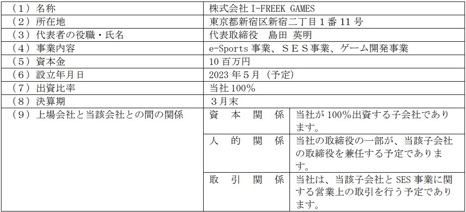 また、主要株主の永田 浩一氏が議決権の過半数を保有し、同社グループと取引関係にあるエスティーエーグループより、ゲーム関連のSES(システムエンジニアリングサービス)についてもI-FREEK GAMESが譲り受けることも合わせて発表となった。取得価額は非開示だが、業績への影響は軽微となる見通し。譲渡契約は6月に締結し、11月に終了する予定。