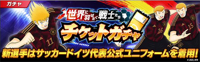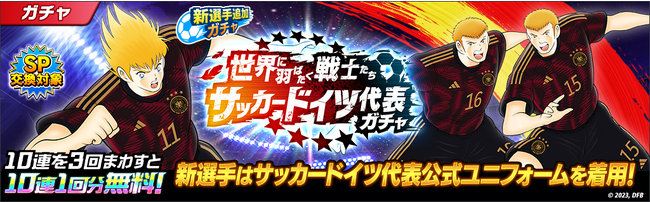 KLab<3656>は『キャプテン翼 ~たたかえドリームチーム~』で、 4月21日(金)よりサッカードイツ代表公式ユニフォームを着用したカール・ハインツ・シュナイダーなどが新選手で登場する「世界に羽ばたく戦士たち サッカードイツ代表オフィシャルキャンペーン」を開催する。