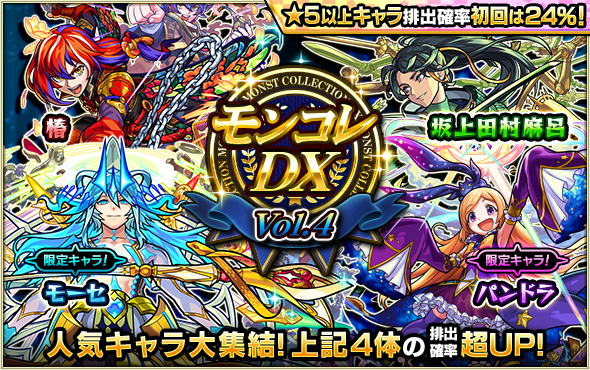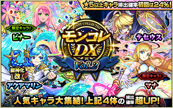 MIXI<2121>は『モンスターストライク』において、4月25日(火)12:00(正午)より、ガチャ「モンコレDX」を開催する。
