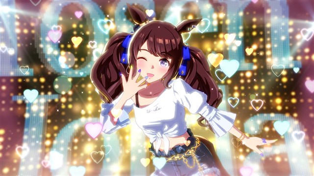 きらめくステージに、ゴールドシチー、トーセンジョーダン、メジロパーマー、ダイタクヘリオスの4人のギャルウマ娘が登場し、ギャルウィークを盛り上げる。