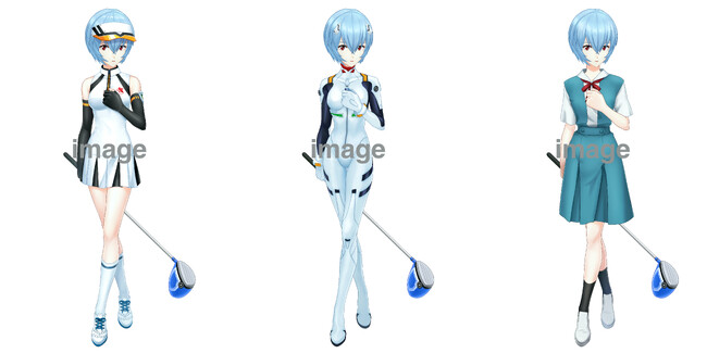 (左から、ゴルフウェア、プラグスーツ、制服)