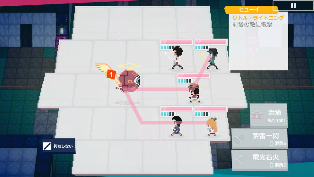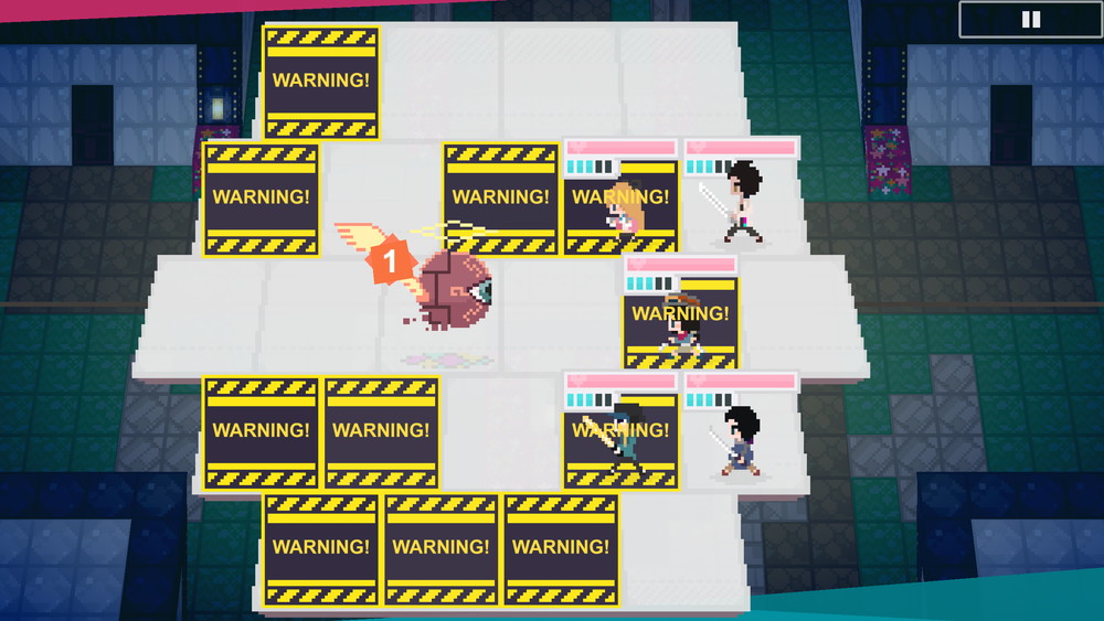 敵から強力な技が飛んでくるWARNINGマス。これを避けながら戦わないと一気にピンチに。攻撃と回避を両立する動きを考えながら戦っていく。