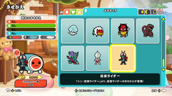 ぷちキャラ「ゴジラ」 「エヴァンゲリオン初号機」「ウルトラマン」「仮面ライダー」は、どんちゃんのきせかえアイテムです。