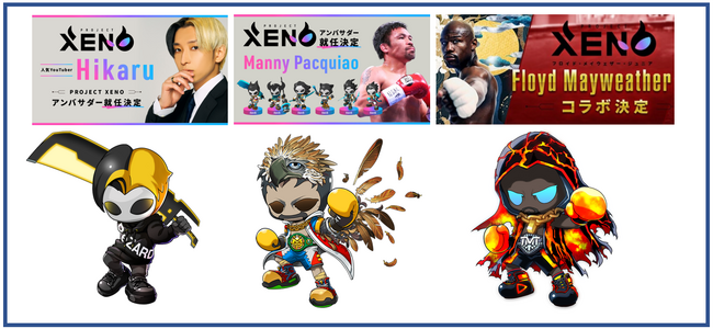 ヒカルさん、マニー・パッキャオさん、フロイド・メイウェザー・ジュニアさんなどとの魅力的なコラボキャラ