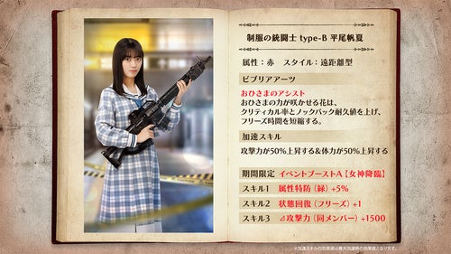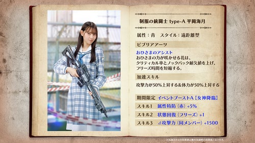 さらに4種類の新たな★4おまもり「女神は坂道アイドル 平岡海月」、「目ヂカラ女神 竹内希来里」、「女神の癒し 渡辺莉奈」、「神ゲーアイドル 平尾帆夏」が獲得できる。