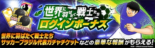 「世界に羽ばたく戦士たち ログインボーナス」では、期間中最大5枚の「世界に羽ばたく戦士たち サッカーブラジル代表ガチャチケット」などを獲得できる。