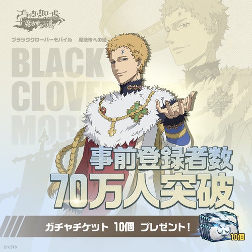 VIC GAME STUDIOS JAPANは、新作スマートフォンアプリ『ブラッククローバーモバイル 魔法帝への道 The Opening of Fate』(以下、ブラクロモ)の事前登録者数が70万人を突破したことを発表した。