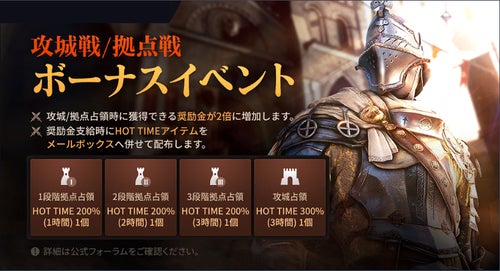 ・「攻城戦/拠点戦 ボーナスイベント 」開催!