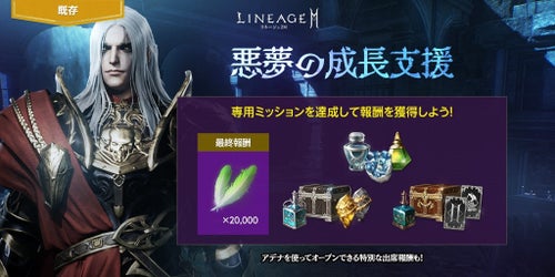 期間中、524アデナを使用することでオープンできる出席報酬「悪夢のハルナークの迷宮」が登場します。