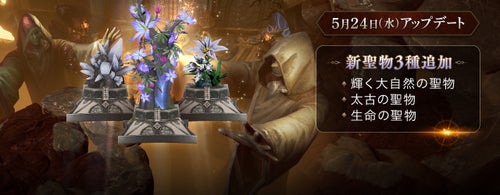本アップデートより、新規成長要素となる3種類の「太古の聖物」、「生命の聖物」、「輝く大自然の聖物」が登場いたします。