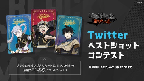 ハッシュタグ「#ブラクロモ」「#ブラクロモBS」をつけて、ゲーム内で撮影したスクリーンショットを投稿すると、抽選でオリジナルクーポンカードが当たる。