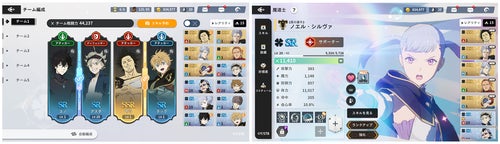▲オリジナルのチーム編成が可能!魔道士管理からキャラクターのステータスが確認できる。ランクアップや強化等で最強の魔道士を育てよう!