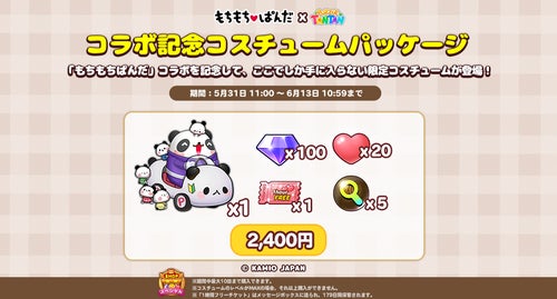 『もちもちぱんだ』とのコラボを記念して、期間限定の特別なコスチュームが登場する。タンタンの着せ替えイベントやコスチュームガチャや限定パッケージにて入手が可能。