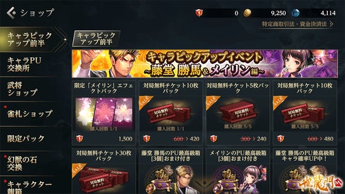 イベント限定商品の「キャラピックアップ最高級箱」は、ピックアップ対象のキャラクター、「藤堂 勝馬」、「メイリン」、「堺 明奈」、「黒島 一樹」の獲得率がアップし、ショップで販売している通常の「最高級箱」よりお買い得。