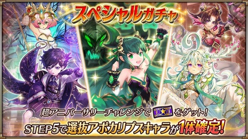 「スペシャルガチャ」では毎STEPキャラが1体確定するほか、STEP5で選抜アポカリプスキャラを1体確定で獲得可能!
