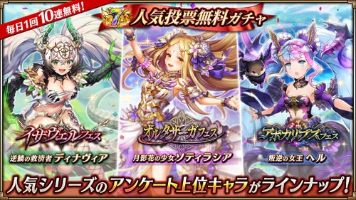 ●毎日10連無料ガチャ開催!アンケート上位キャラがラインナップ!