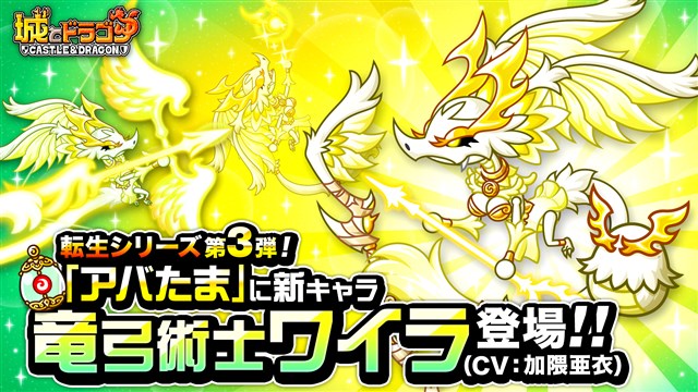 6月1日、“転生シリーズ”第3弾が登場!空から弓を射る竜族の弓術士「竜弓術士ワイラ」が「ワイラのアバたま」に登場する。通常スキルのほかに“降臨の儀”が使える特別な“転生シリーズ”のキャラ。