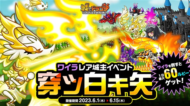 「バトル」から「ひとりで」または「みんなで」を選んで「攻撃」を選択すると、ランダムでレア城主が出現する“レア城主イベント”に「穿ツ白キ矢」が登場。見事勝利すれば、豪華報酬を獲得することができるほか、出現した竜弓術士ワイラを倒すと1体につき10ルビー、1日最大60ルビーを手に入れることができる。