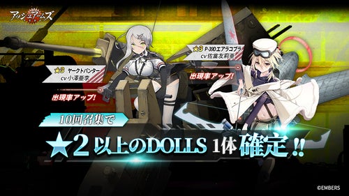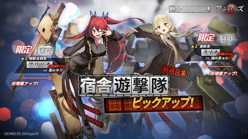 コラボ限定DOLLS ★3軽駆逐戦車「アリビナ」と★3重戦車「ライカ」を「運命の相手」として選択できます。「運命の相手」を決めると、該当DOLLSがピックアップされる専用召集が生成されます。