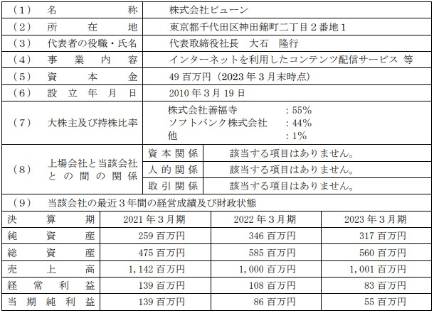 Link-U<4446>は、この日(6月6日)、個人向けのマンガや雑誌の読み放題サービスであるブック放題などを提供しているビューンの発行済株式の49.0%に相当する8624株を取得することを明らかにした。主にソフトバンクから取得するとのこと。8月に実行する予定で、ビューンは、Link-Uの持分法適用関連会社となる予定。