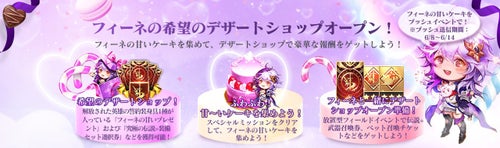 イベント期間中は、キャラクターの召喚や超越の回数に応じて、合計で「衣装チケット×500枚」と「フィーネの甘いケーキ×1,300個」を獲得できます。