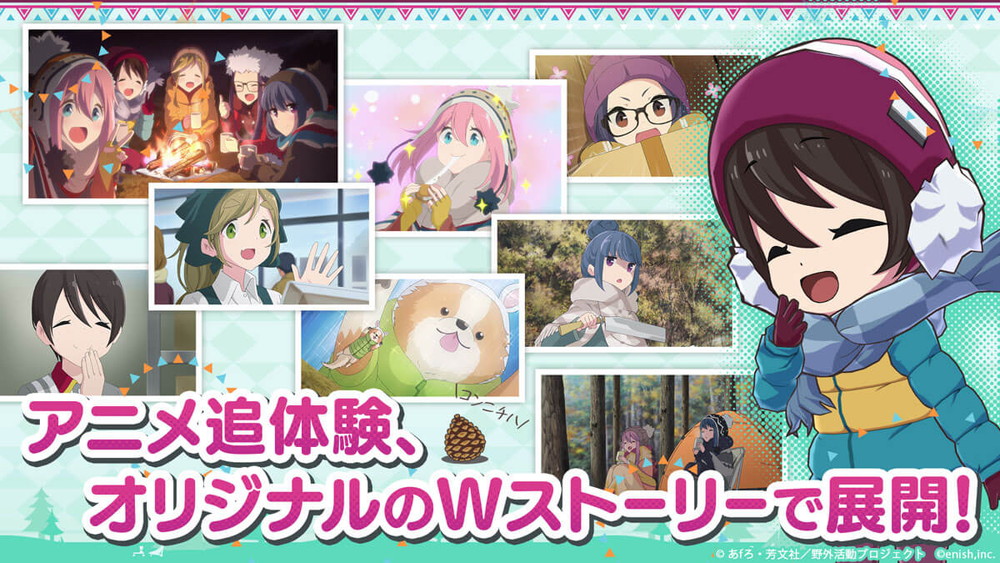 TVアニメ『ゆるキャン△』要素が全部入り!初のオンラインゲームがついに登場。各務原なでしこ、志摩リン、大垣千明、犬山あおい、斉藤恵那など、おなじみのキャラクターのモーション&フルボイスの豊富な掛け合いや、1,000を超えるキャンプギアや乗り物、美味しそうなキャンプ飯、山梨・長野・静岡を中心とする各地の美しい景色など、TVアニメ『ゆるキャン△』の要素が続々登場予定。
