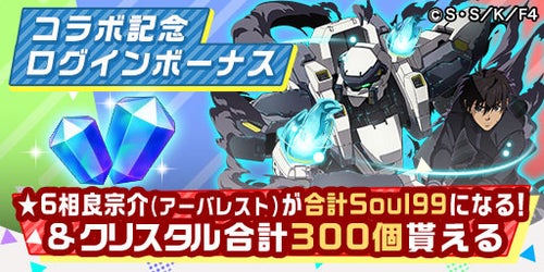 ファンタジア文庫コラボ 第2弾ログインボーナスを開催。ログイン1日目でクリスタルが100個とキャラクター「★6 相良宗介(アーバレスト)」が貰える。