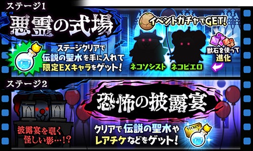 「伝説の聖水」を集めて第3形態で「ネコソシスト」に進化する「古びたタマゴ:N201」や「ネコピエロ」に進化する「古びたタマゴ:N203」などをゲットしよう。
