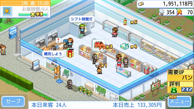 本作は、魅力的な棚を自由に設置してコンビニを経営するシミュレーションゲーム。定番商品「おにぎり」「お弁当」「スイーツ」などを自由に配置。レジの横には「肉まん」に「からあげ」、雑誌コーナーを作ることも可能だ。
