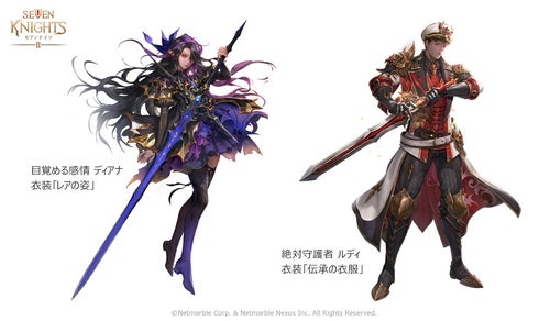 ゲーム内に〈目覚める感情 ディアナ〉の衣装「レアの姿」と〈絶対守護者 ルディ〉の衣装「伝承の衣服」を追加しました。ディアナの新衣装はショップから、ルディの新衣装はイベントを通じて入手することができます。