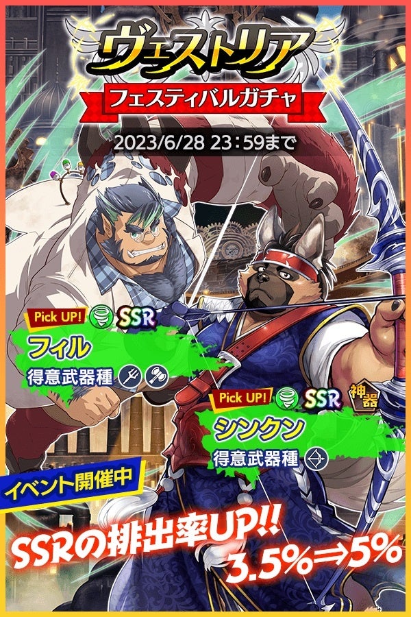 SSRの入手確率が大幅にUPした「ヴェストリアフェスガチャ」が開催。