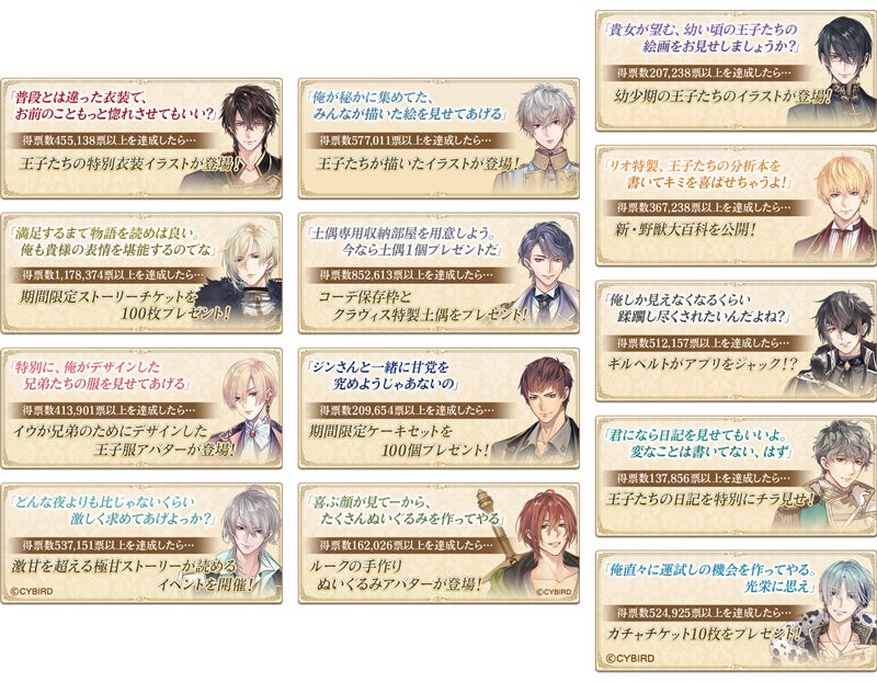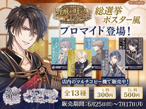 サイバードが手掛ける、累計会員数4,000万人を誇る大人気恋愛ゲーム「イケメンシリーズ」の人気作『イケメン王子 美女と野獣の最後の恋』は、2023年7月1日(土)でサービス開始より3周年を迎えることを記念し、2023年6月25日(日)より「イケプリ総選挙2023 野獣が叶える美女の夢~King of the BEAST~」を開催する。