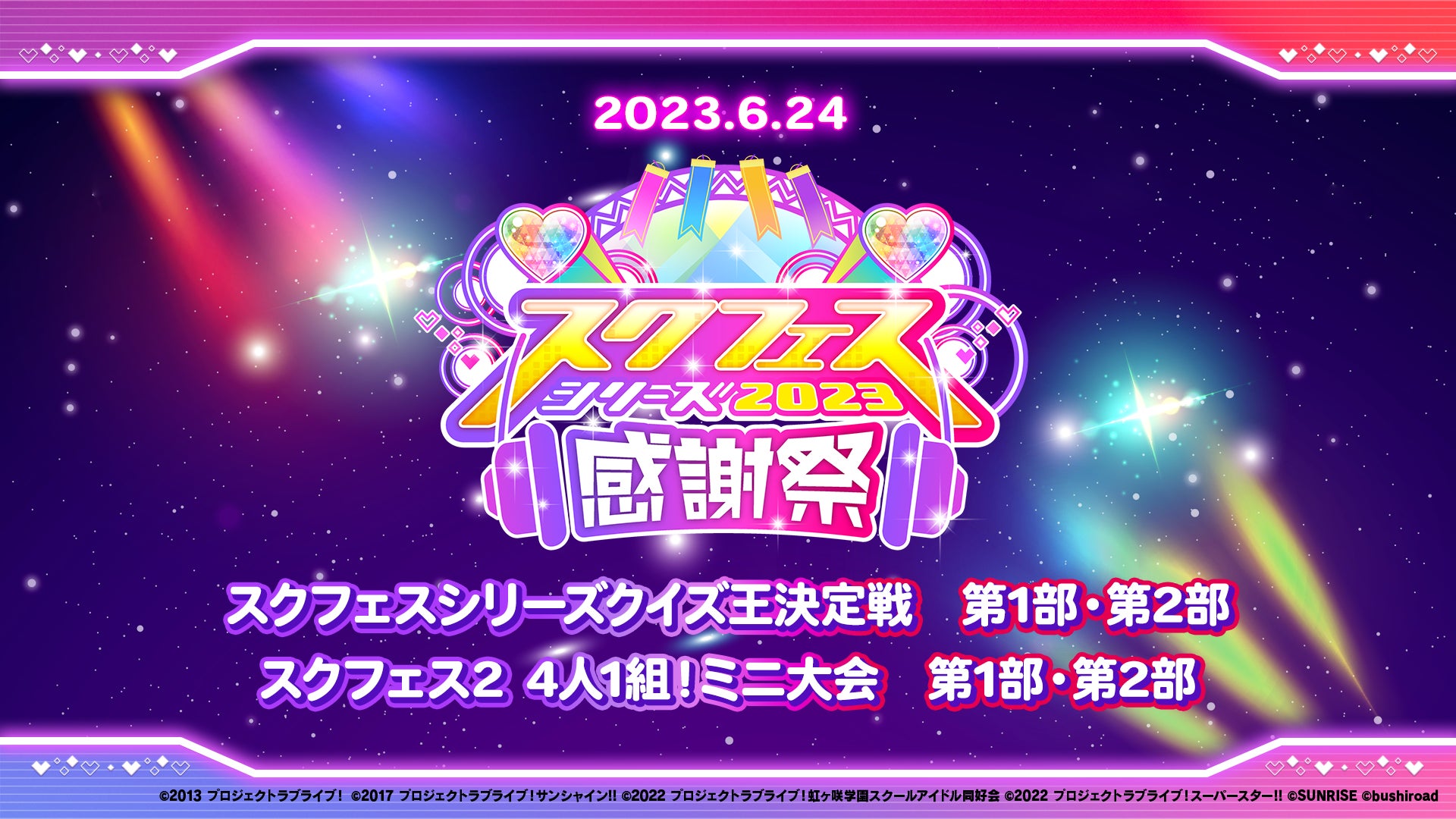 ブシロード<7803>はスマートフォン向けアプリ「ラブライブ!スクールアイドルフェスティバル2 MIRACLE LIVE!」(以下、スクフェス2)、バンダイナムコフィルムワークスと共同開発したスマートフォン向けアプリ『ラブライブ!スクールアイドルフェスティバル ALL STARS』(以下、スクスタ)のリアルイベント「スクフェスシリーズ感謝祭2023」のステージを、明日6月24日から開催する。