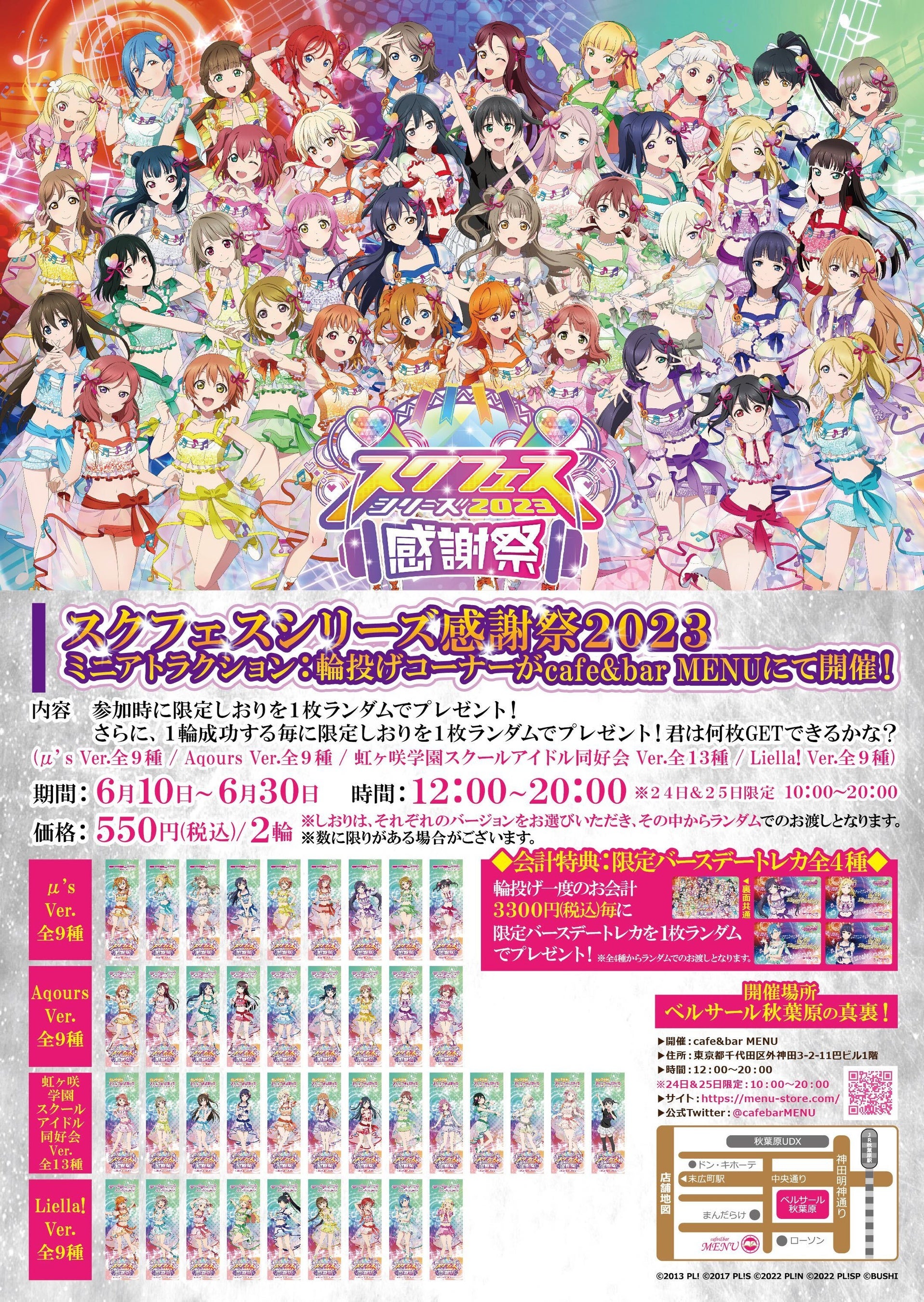 「cafe&ber MENU」にてスクフェスシリーズ感謝祭2023のノベルティがもらえるアトラクションを行う。