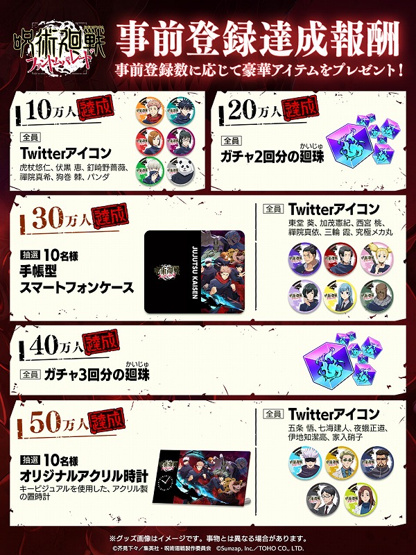 サムザップは、東宝<9602>が企画・制作し、サムザップが企画・制作・開発・運営を行う、スマートフォンゲーム『呪術廻戦 ファントムパレード』(以下、『ファンパレ』)において、6月27日よりApp Storeでの事前登録を開始した。