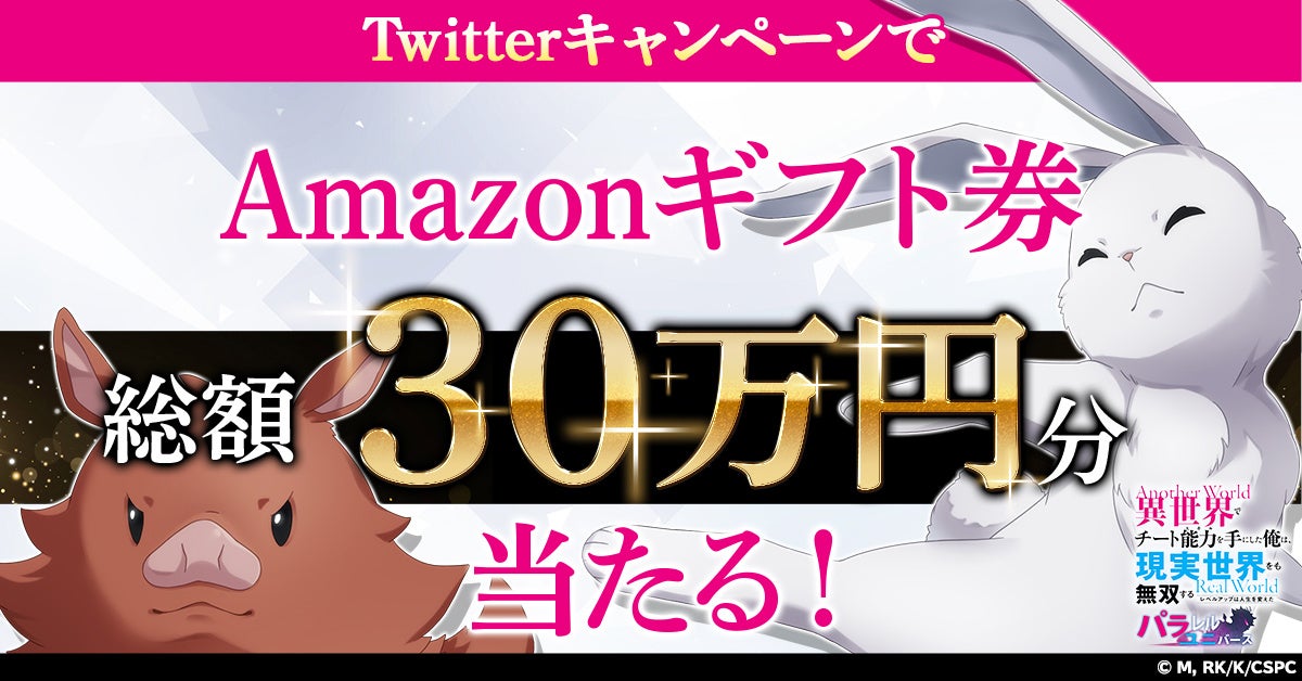 公式Twitterにて、Amazonギフト券が総額30万円分当たるキャンペーンを開催。
