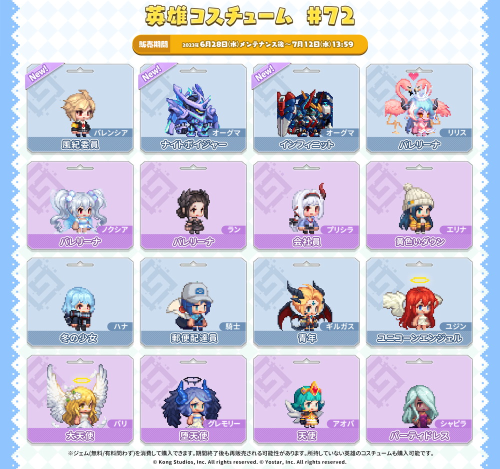ショップで「英雄コスチューム#72」、「装備コスチューム#34」を販売中。