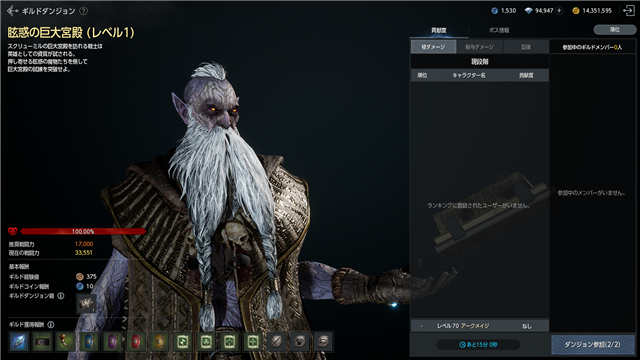 ・ギルドダンジョンは、1回あたり15分の時間制限が設けられている。