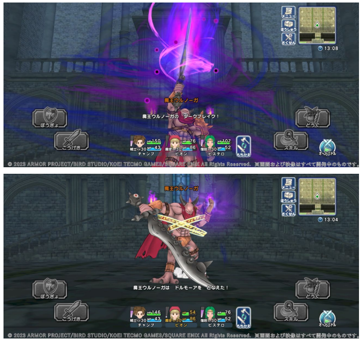 魔王ウルノーガは「ダークブレイク」など強力な全体こうげきを仕掛けてくるので、しっかり準備を行い挑んでみよう。