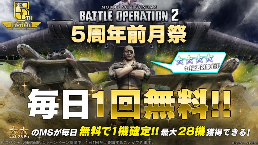 バンダイナムコENT、『機動戦士ガンダム バトルオペレーション2 』で【5周年前月祭】第一部「連邦の白い悪魔の軌跡」キャンペーンを開催